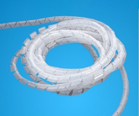 本品采用PE料制成,可以保护电线不受磨损及绝缘之用 本厂有两种缠绕管,型式有带径和不带径两种,一种普通型不带白色透明(或黑色),另一种是带径阻燃型缠绕管颜色有黑色和白色。